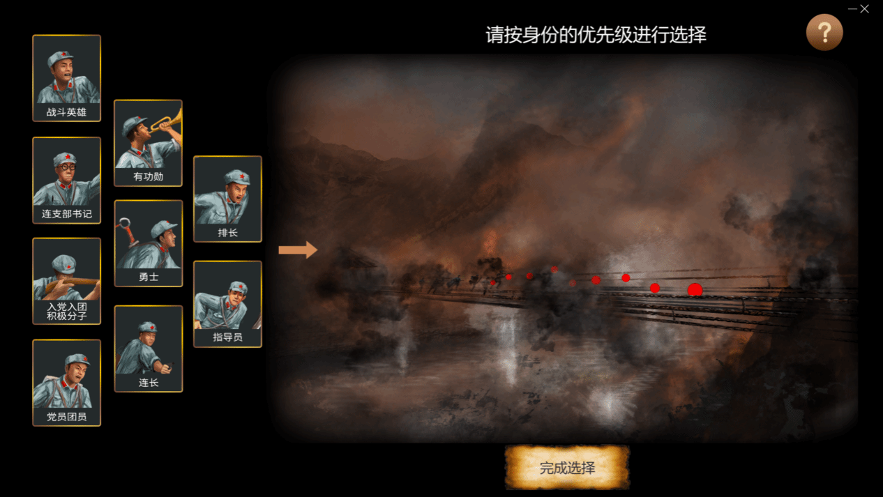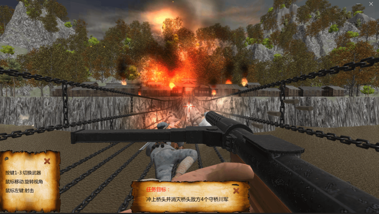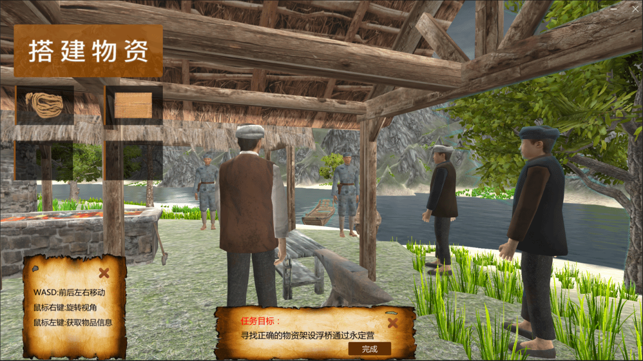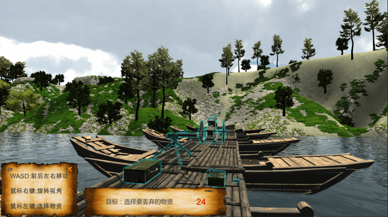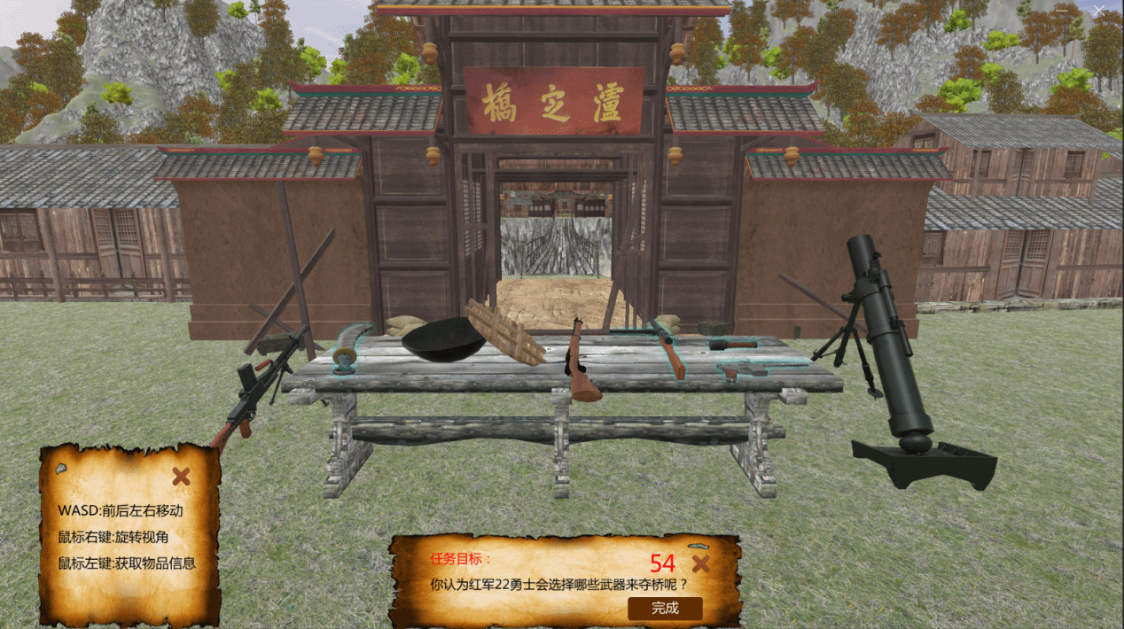 在本项目中,学员以第一人称的视角化身渡河红军,通过取舍过河物资,安全穿越河流,体验红军四渡赤水的艰难条件。在体验过程中,学员还可选择多种武器击落飞机,过程惊险刺激,让学员充分感受当年红军飞渡赤水河艰苦卓绝的环境和顽强战斗的精神。