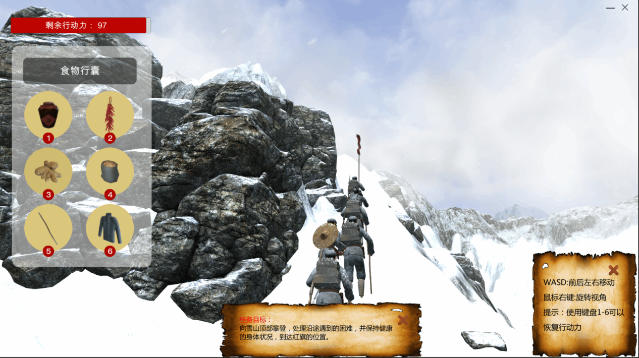 在本项目中,学员化身的红军需要提前准备足够的棉衣和御寒的烧酒等物资,切身体验红军战士置身陡峭雪山、茫茫草地上艰苦跋涉的场景。通过实验,感悟和学习红军伟大的爱国主义精神,增强中华民族守望相助的大团结观念,真切感受政治建设是党的根本建设,坚定维护党中央权威和集中统一领导。?
