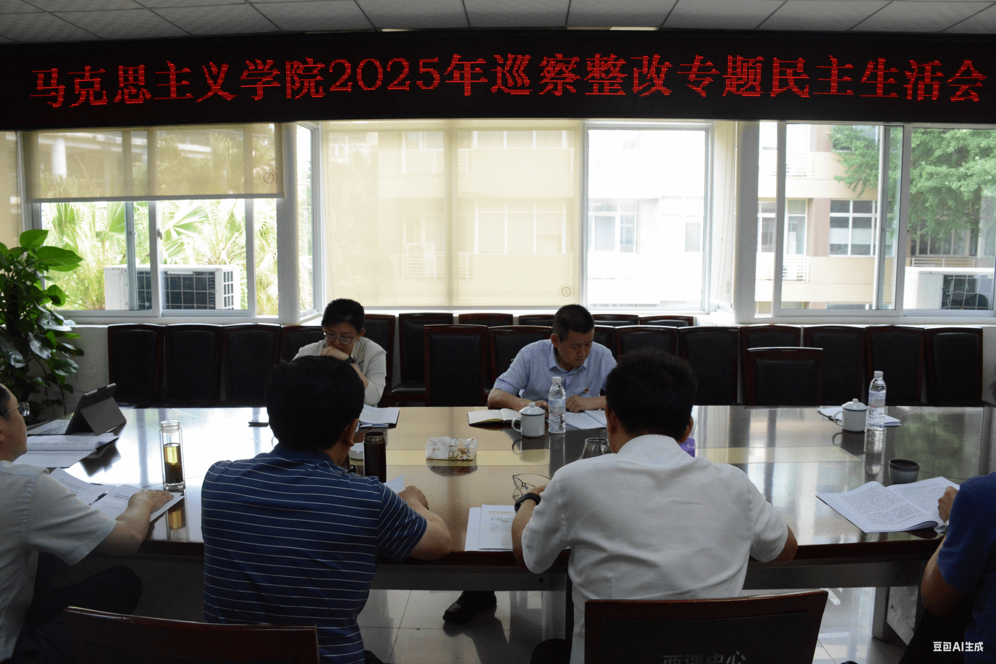 2025年7月4日,马克思主义学院党委召开巡察整改专题民主生活会。学校党委副书记明海峰出席会议并作点评,学校党委组织部组织科科长李筱列席会议。学院党委书记雷栋良,院长唐晓勇,副院长吴玉平,副院长刘世强,党委副书记、纪委书记钟芸莹参加会议。雷栋良主持会议。